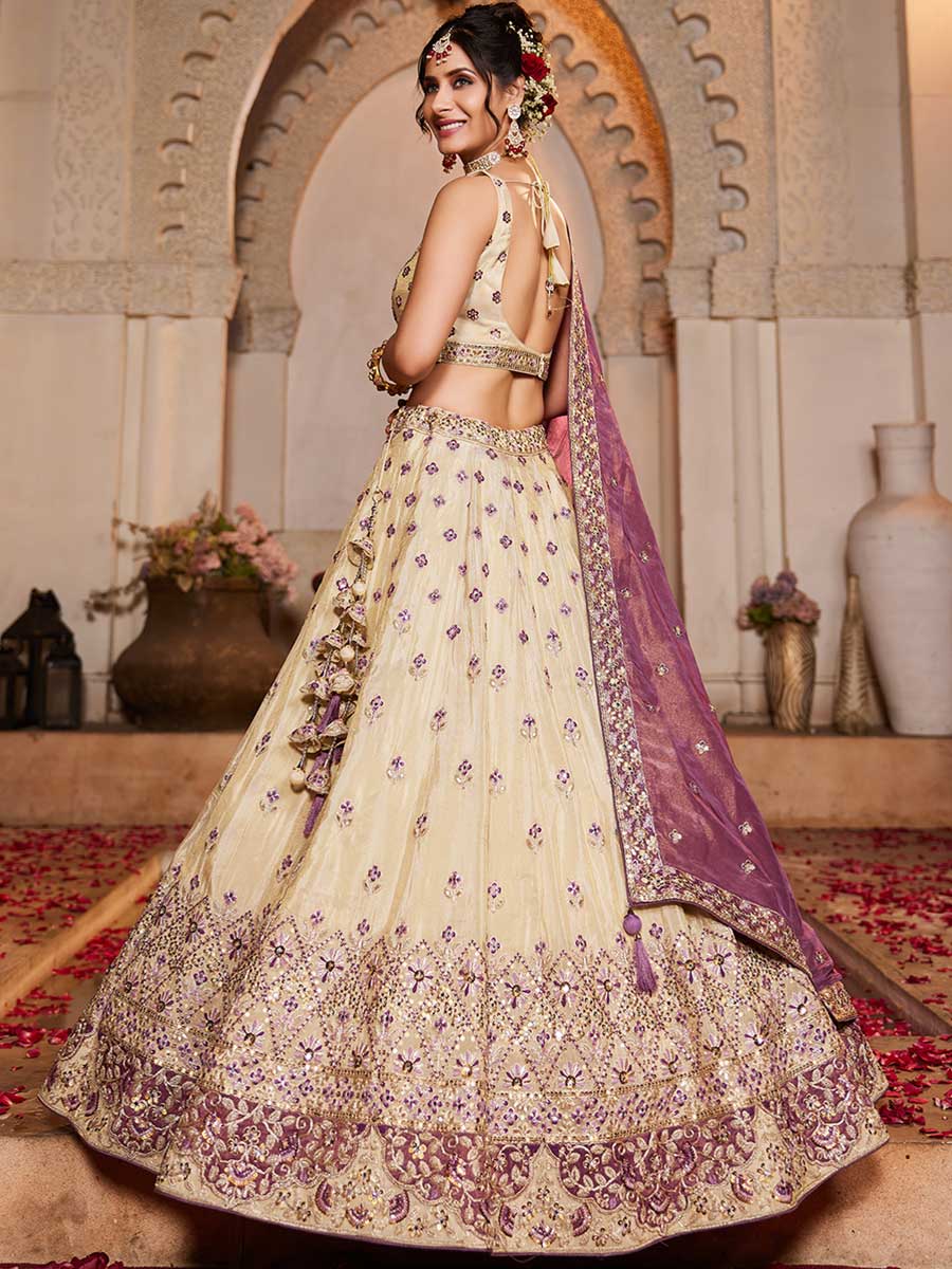 Cream Color Tissue Lehenga Choli