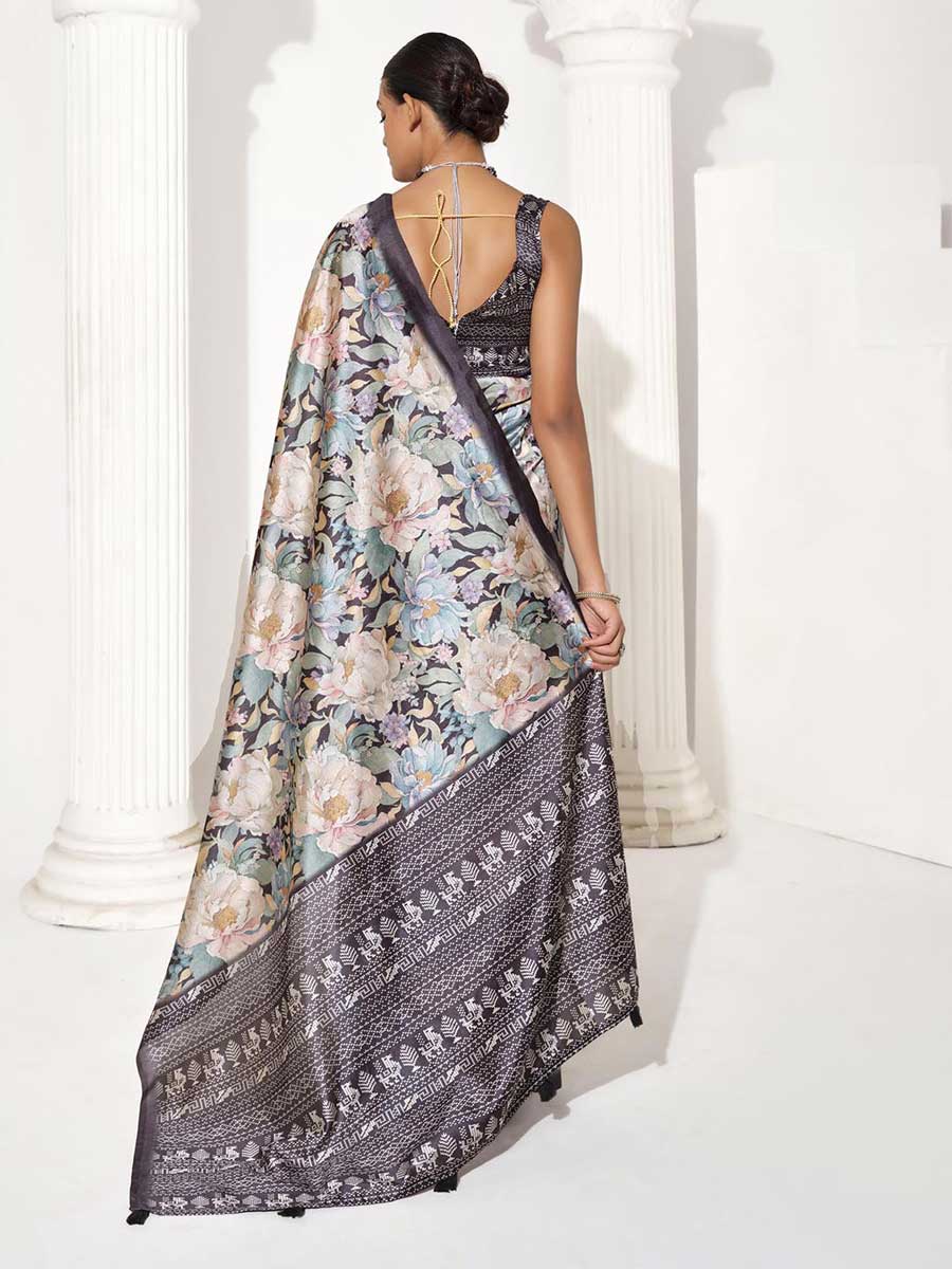 Grey Color Silk Blend Saree