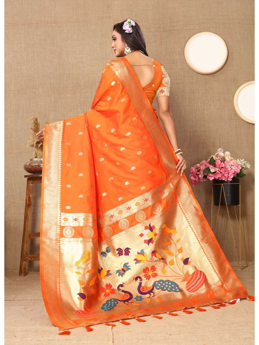 Orange Color Paithani Silk Saree