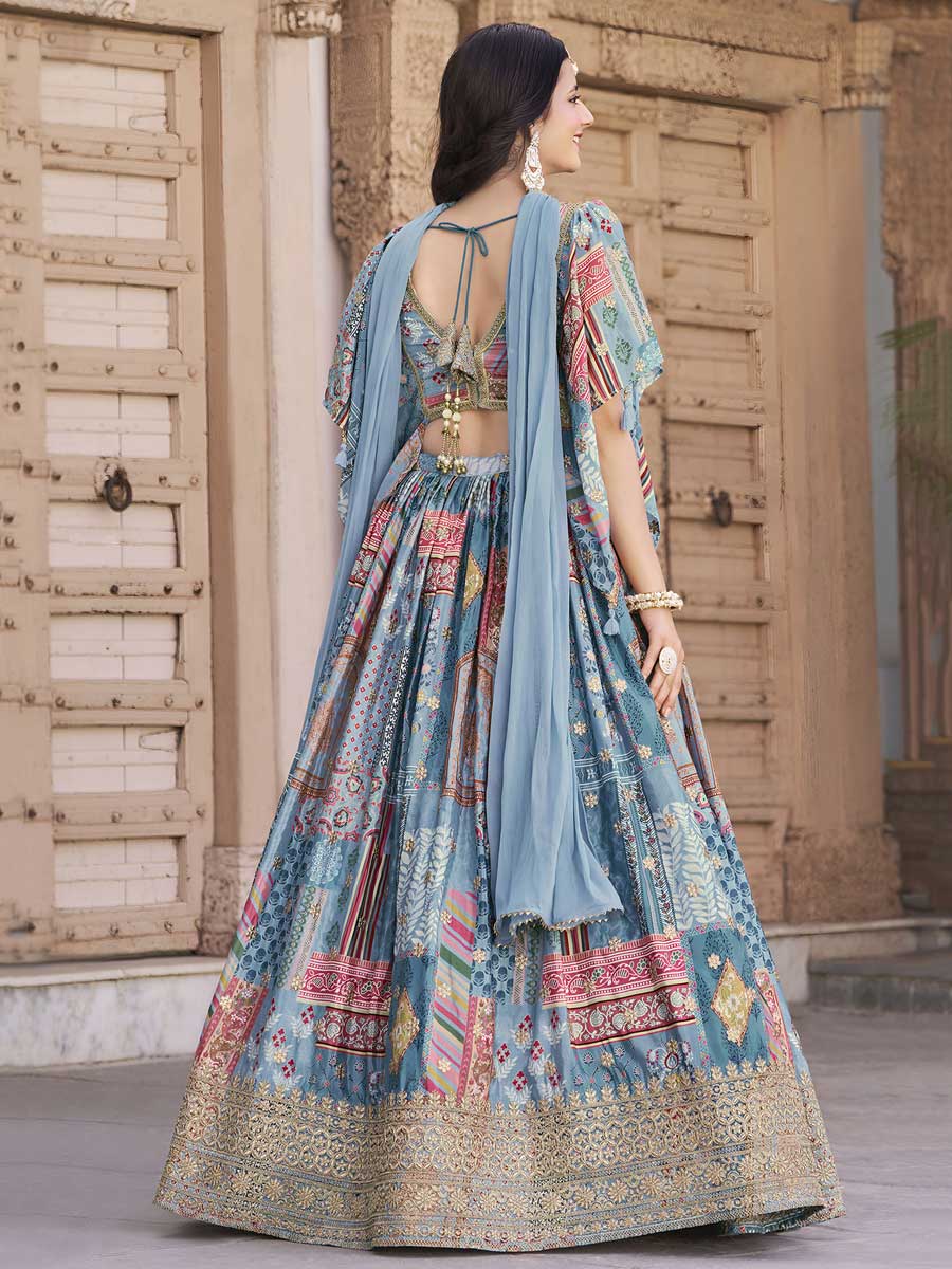 Sky Blue Color Chinon Silk Lehenga Choli