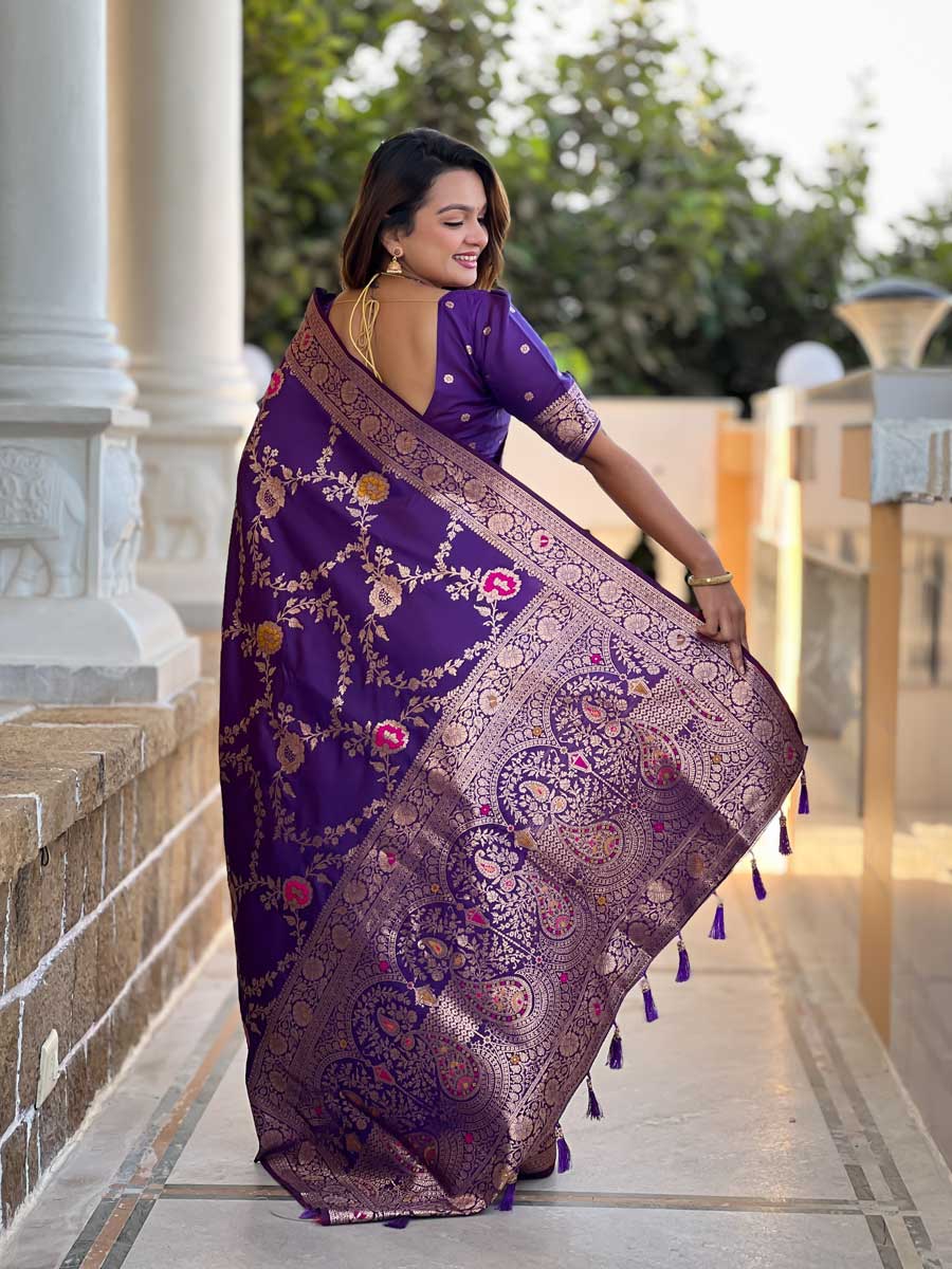 Voilet Color Banarasi Silk Saree